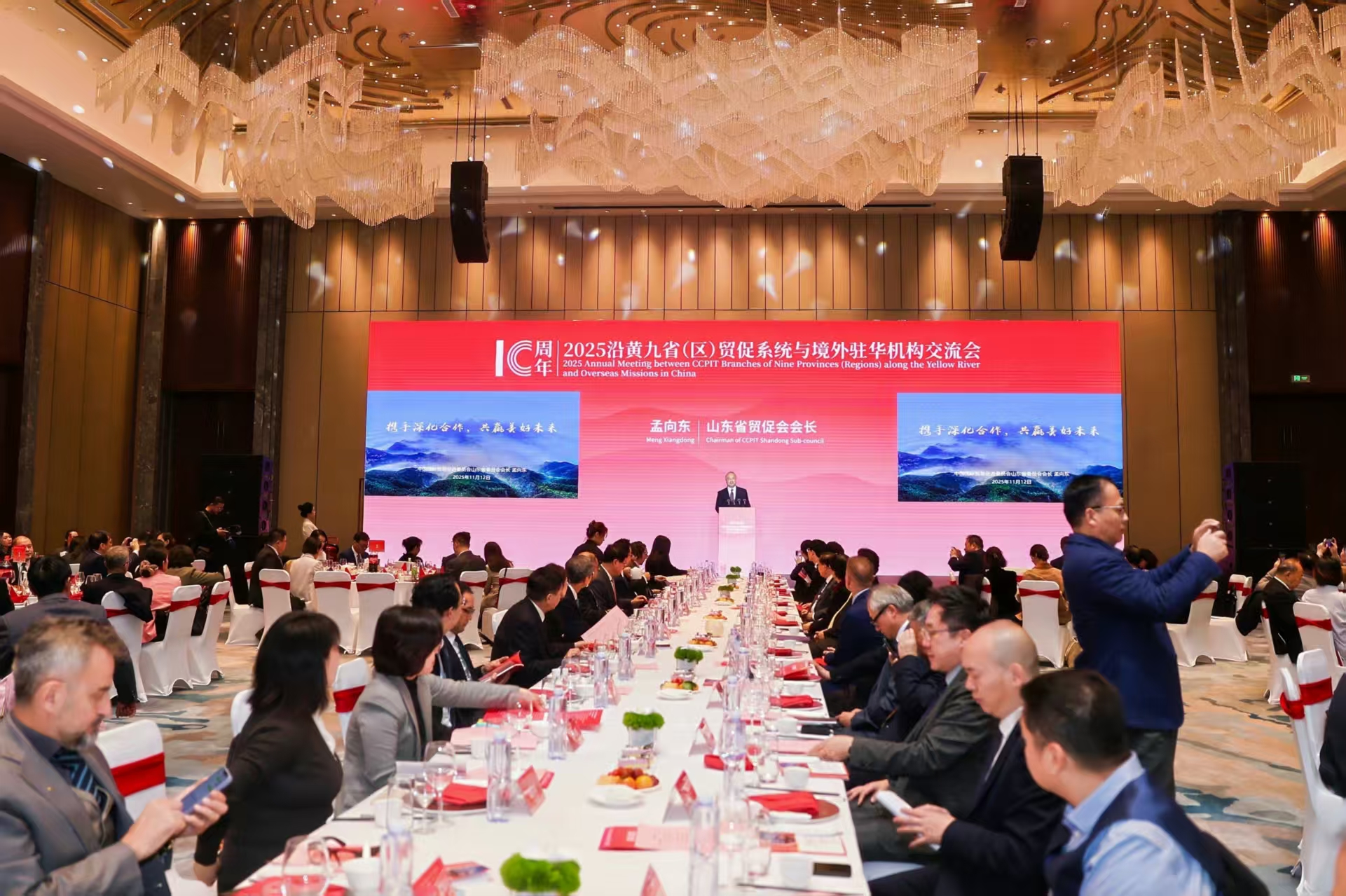 11月12日,2025沿黄九省(区)贸促系统与境外驻华机构交流会在济南成功举办。来自柬埔寨、泰国、日本、澳大利亚、英国、加拿大等17个国家和地区的32家境外使领馆、贸促机构、商协会代表,沿黄九省(区)贸促会负责人齐聚泉城,围绕各自产业发展情况、重点合作项目等进行研讨。张铁军副会长参加活动。