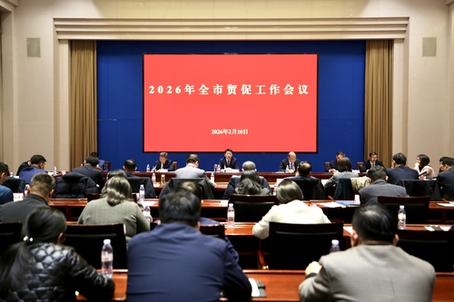 2月10日下午,2026年全市贸促系统工作会议在龙奥大厦召开。会议以习近平新时代中国特色社会主义思想为指导,全面贯彻党的二十大及二十届历次全会精神,认真落实中央和省、市经济工作会议部署,总结2025年及“十四五”时期全市贸促工作成效,分析当前发展形势,部署2026年重点任务,谋划“十五五”贸促事业发展方向。市贸促会党组书记、会长齐怀栋出席会议并讲话,市贸促会党组成员、副会长滕志超主持会议。