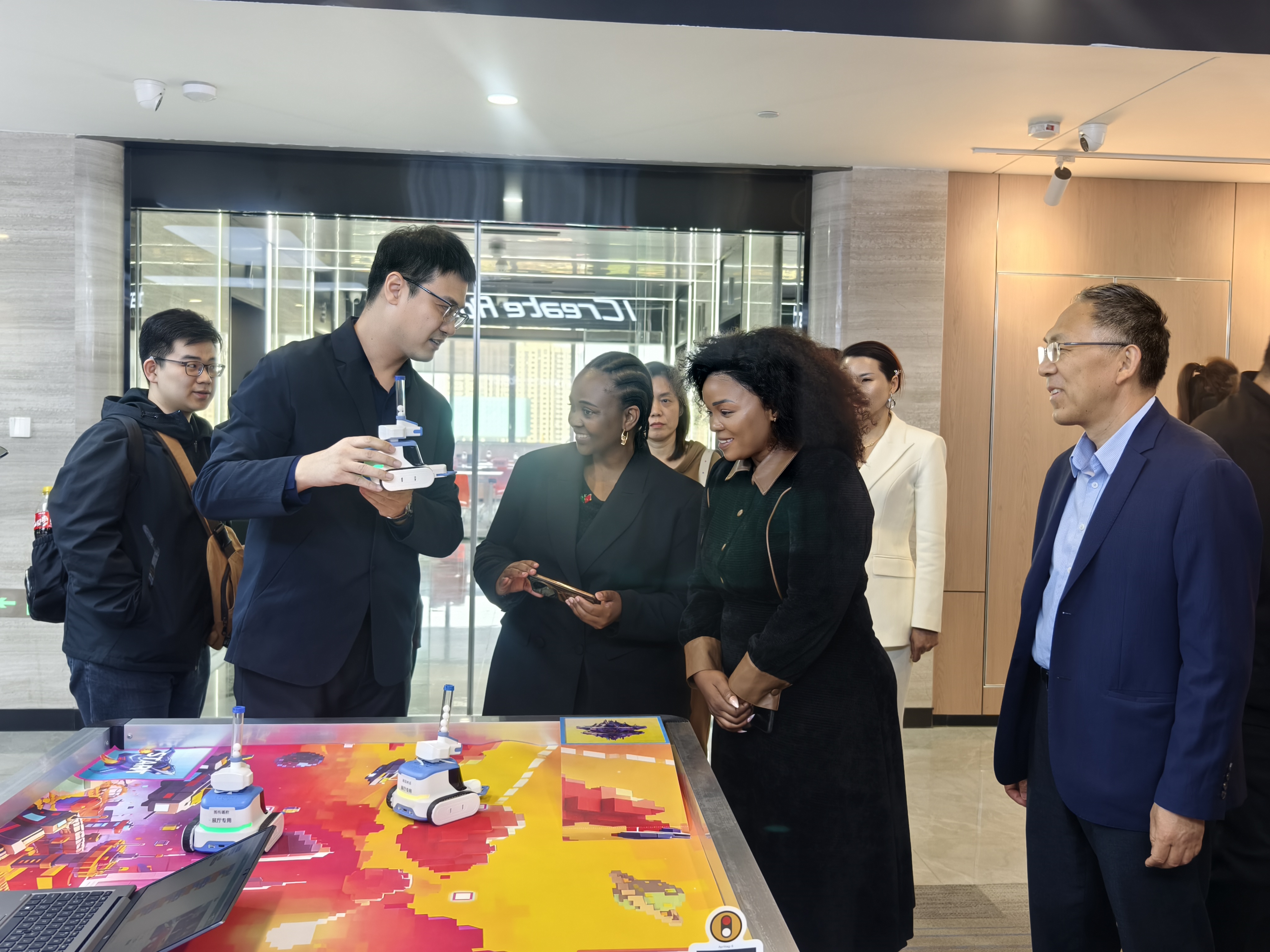 4月3日下午,中非中小农协会自由州省分会主席恩塔比森·姆蒂克拉克拉一行到艾克瑞特教育科技有限公司参观考察,济南市贸促会副会长张铁军陪同。考察团一行实地参观了艾克瑞特教育科技有限公司的展厅及核心产品,详细了解企业在STEM教育、机器人教学及儿童智能硬件开发等方面的技术成果和生产能力。随后,双方举行座谈交流。