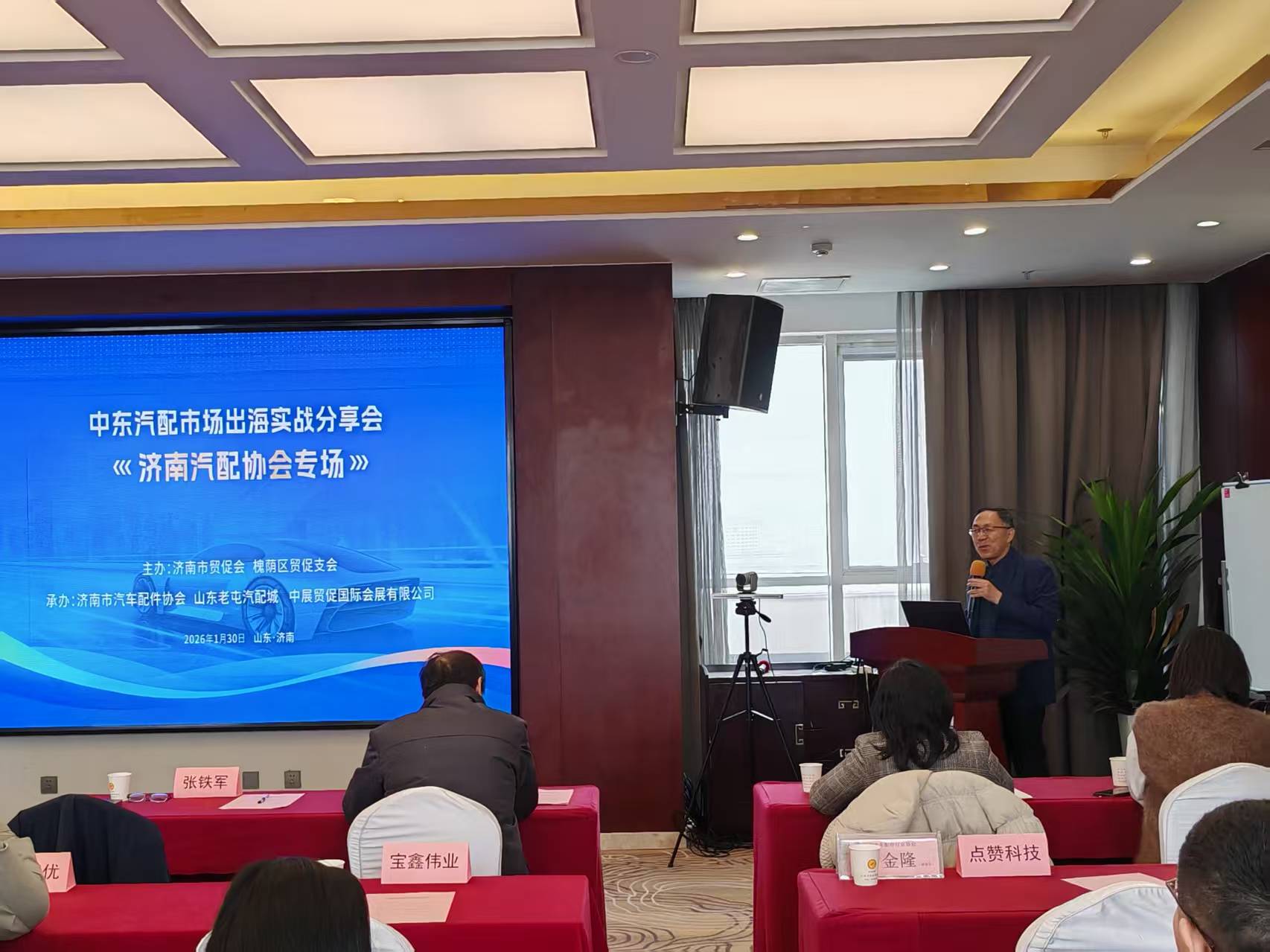 为深入推动济南汽配产业“抱团出海”,1月30日下午,济南市贸促会、槐荫区贸促支会、济南市汽车配件协会联合举办中东汽配市场出海实战分享会。市贸促会党组成员、副会长张铁军参加会议并致辞。