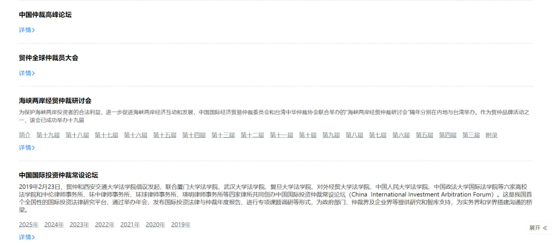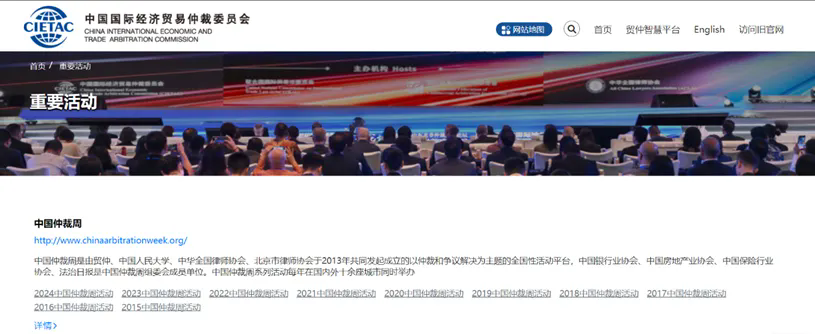 贸仲官网首页以活动日历和近期活动模块,让广大国内外仲裁用户一键触达“中国仲裁周”“中国仲裁高峰论坛”“贸仲全球仲裁员大会”“一带一路仲裁机构高端论坛”“中国-拉丁美洲国际仲裁论坛”“中国-中东北非仲裁高峰论坛”“中国-中亚仲裁论坛”“中国-非洲仲裁国际合作会议”“RCEP及东盟国际仲裁高峰论坛”“上合组织仲裁法律论坛”等贸仲重大或最新活动,无论身处何地,均可通过线上会议链接参与研讨交流,无惧山海之隔,汇聚全球仲裁智慧。