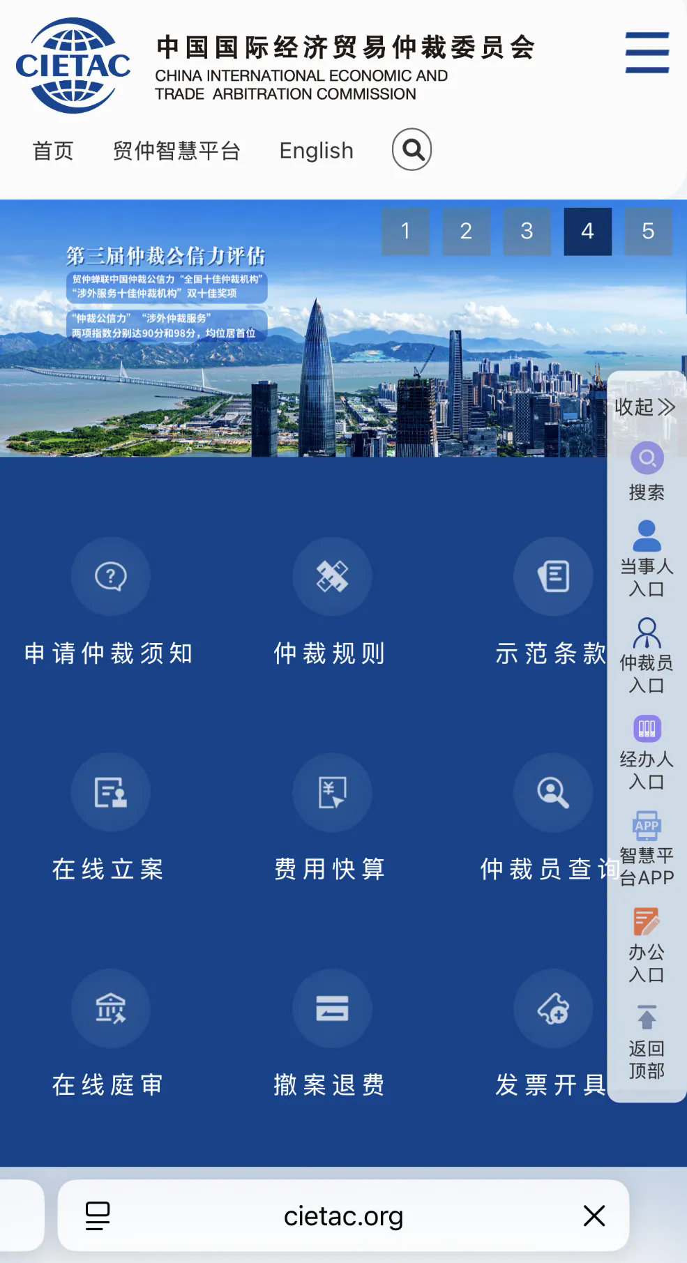 (贸仲官网手机端首页图)