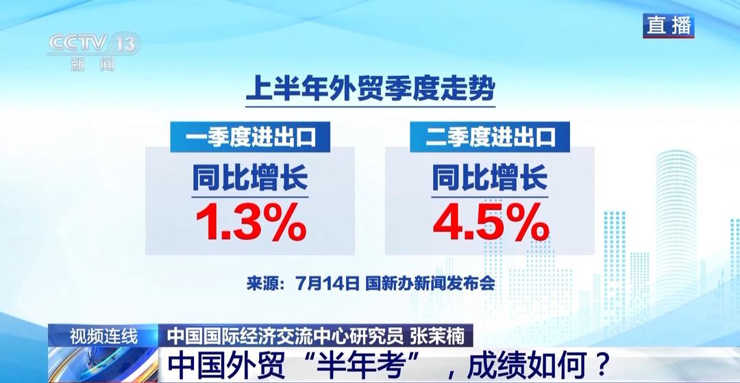 中国国际经济交流中心研究员 张茉楠:整体看今年上半年的外贸成绩确实超乎预期,经历外部的不确定性,包括贸易摩擦,以及贸易保护主义所带来的冲击之下所取得的成绩。总体来讲可以用价增质优来形容,尤其是对于整体的贸易结构而言,可以说交出了一份比较满意的答卷。