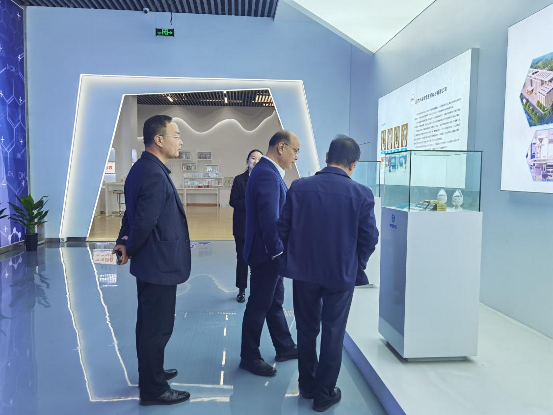 在调研鲁中国际生物谷时,滕志超在莱芜区贸促会李寿章会长、鲁中国际生物谷负责人等陪同下参观了鲁中国际生物医药产业园展厅,听取了医药产业园区的相关介绍,考察了解园区发展规划及医药生物企业科研成果。鲁中国际生物谷是全市十大千亿产业集群的重要组成部分,是“康养济南”的重要产业支撑,着力促进政、产、学、研创新持续发展,突出孵化优势,打造济南生物医药产业“新引擎”。园区现有入驻企业35家,其中代表企业有宏济堂制药、创新抗肿瘤药物开发的山东珅诺基药业有限公司、集药物研发生产销售于一体的山东济世药业有限公司、以生物合成技术为依托的山东乾肽生物科技有限公司、从事微创医疗器械研发生产的山东华安生物科技有限公司等。