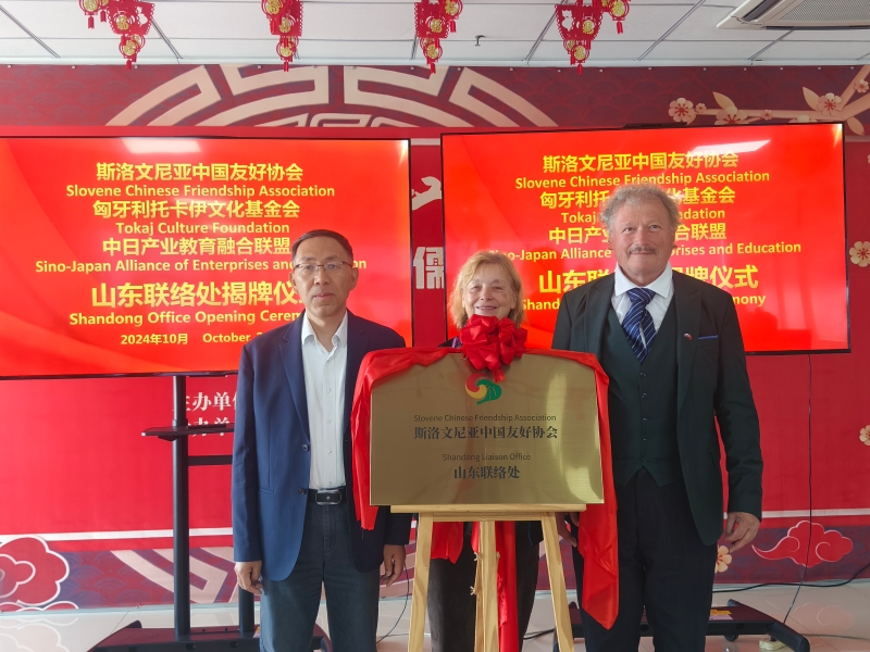 10月25日上午,斯洛文尼亚中国友好协会、匈牙利托卡伊文化基金会以及中日产业教育融合联盟三家机构山东联络处在山东海外机构联合办公中心挂牌启动,张铁军副会长出席挂牌仪式致辞,并为斯洛文尼亚中国友好协会山东联络处揭牌。