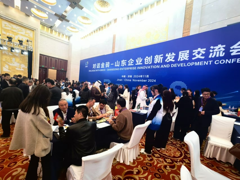 11月14日,“对话金砖--山东企业创新发展交流会”在济南举办,张喆会长受邀参加开幕式。活动以“凝聚合力 共促发展”为主题,邀请来自阿联酋、埃及、沙特、巴西、越南、俄罗斯、泰国、马来西亚、德国、安哥拉等十余个国家驻华使馆、商协会组织、工商界代表参会。