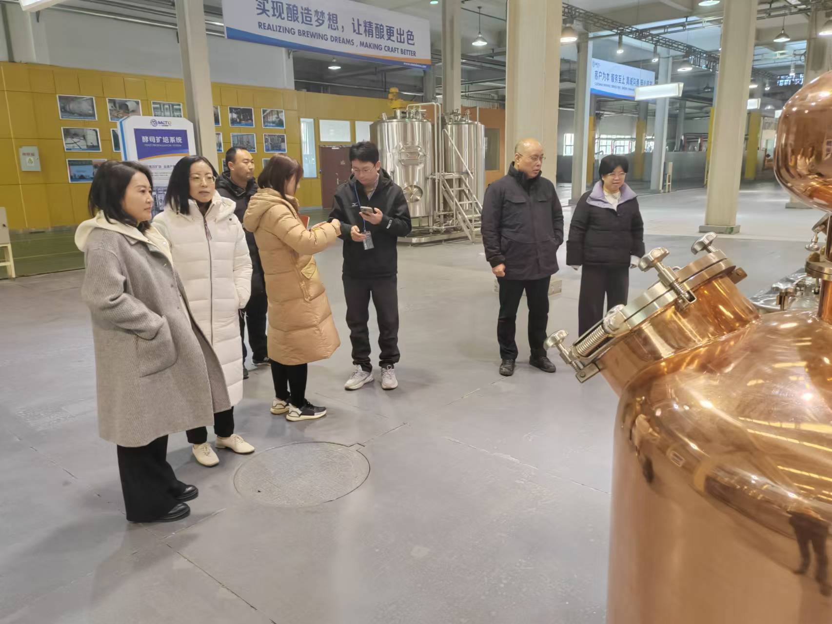 随后,考察组一行前往迈拓啤酒设备有限公司进行参观考察。这家成立于2013年的国家高新技术企业,专注于内外贸一体化业务,已为全球3000多家客户提供了稳定的产品和服务,参与建造工厂类项目达110多家,总计销售设备约30000台套,产品遍布全球70多个国家。公司多次荣获中国生物发酵优秀服务商称号,并被评为中国轻工机械行业精酿啤酒酿造装备十强企业。在参观展示中心、研发中心及生产车间的过程中,考察组重点考察了迈拓啤酒设备的产品质量和技术水平,并就公司产品未来在国外市场的拓展进行了探讨。