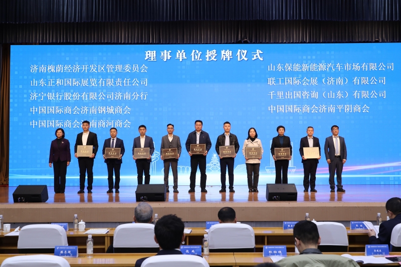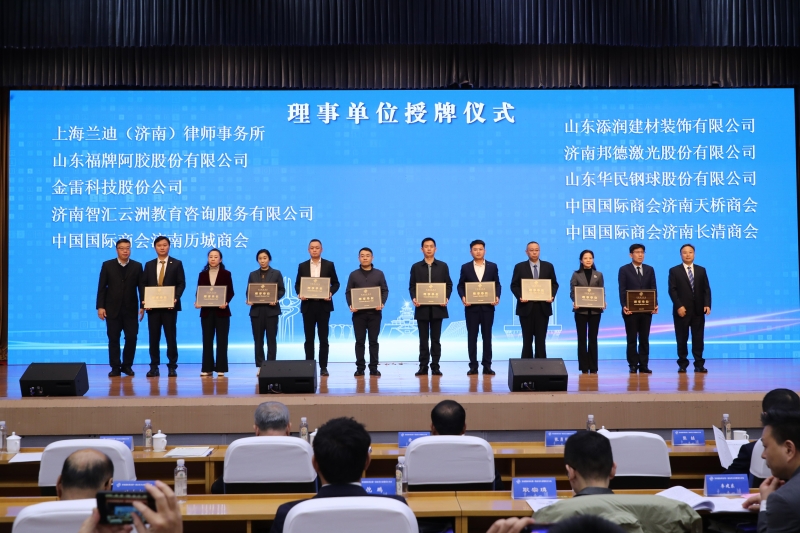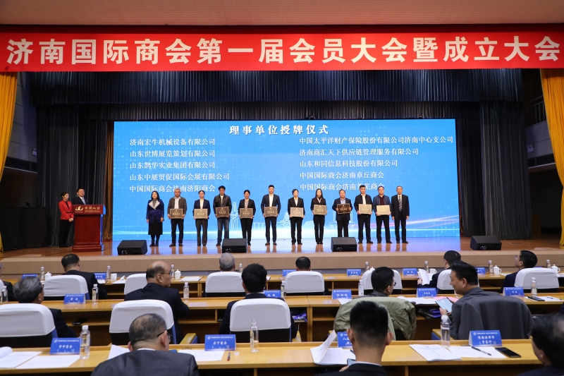 大会由济南市贸促会党组书记、会长齐怀栋主持。大会审议并通过《济南国际商会章程》《济南国际商会第一届会员大会选举办法》等,选举产生了第一届会长、副会长、理事和监事,并为副会长单位、监事及理事单位授牌。
