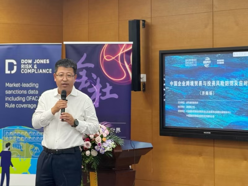 2024年9月10日,由济南市贸促会、山东省贸促会商法中心支持,金杜律师事务所、道琼斯公司等共同举办的“企业跨境贸易与投资的风险防范及应对”研讨活动在济南人寿大厦举办,作为济南贸促会举办的的贸促商学院2024第四期培训,邀请来自中国人民大学海关与外汇法律研究所、金杜律师事务所、道琼斯风险合规中国区等机构资深专家聚焦企业跨境贸易、投资中的合规风险,在出口管制与制裁、跨境争议解决领域面临的新问题和新挑战,提出风险防范和应对建议,助力企业全面提升风险预判与风险应对能力。